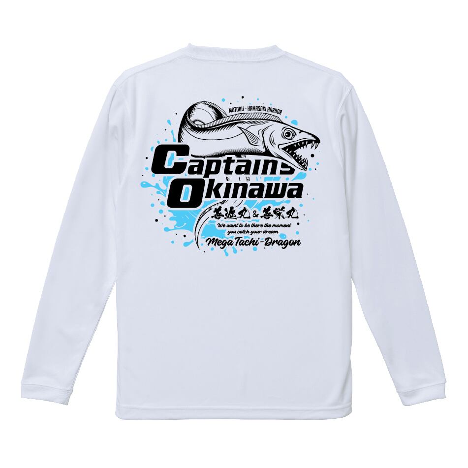 遊漁船キャプテンズオキナワの新しいメガタチver.デザインオリジナルドライロングTシャツです。