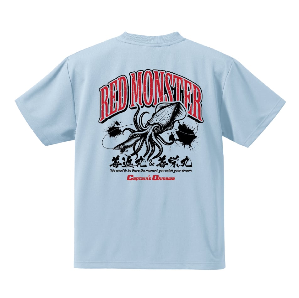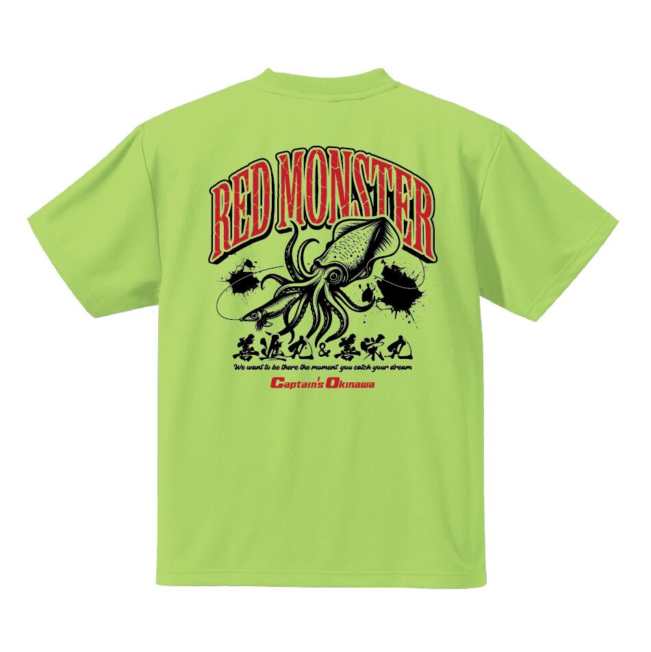 遊漁船キャプテンズオキナワの新しいレッドモンスターver.オリジナルドライTシャツです。