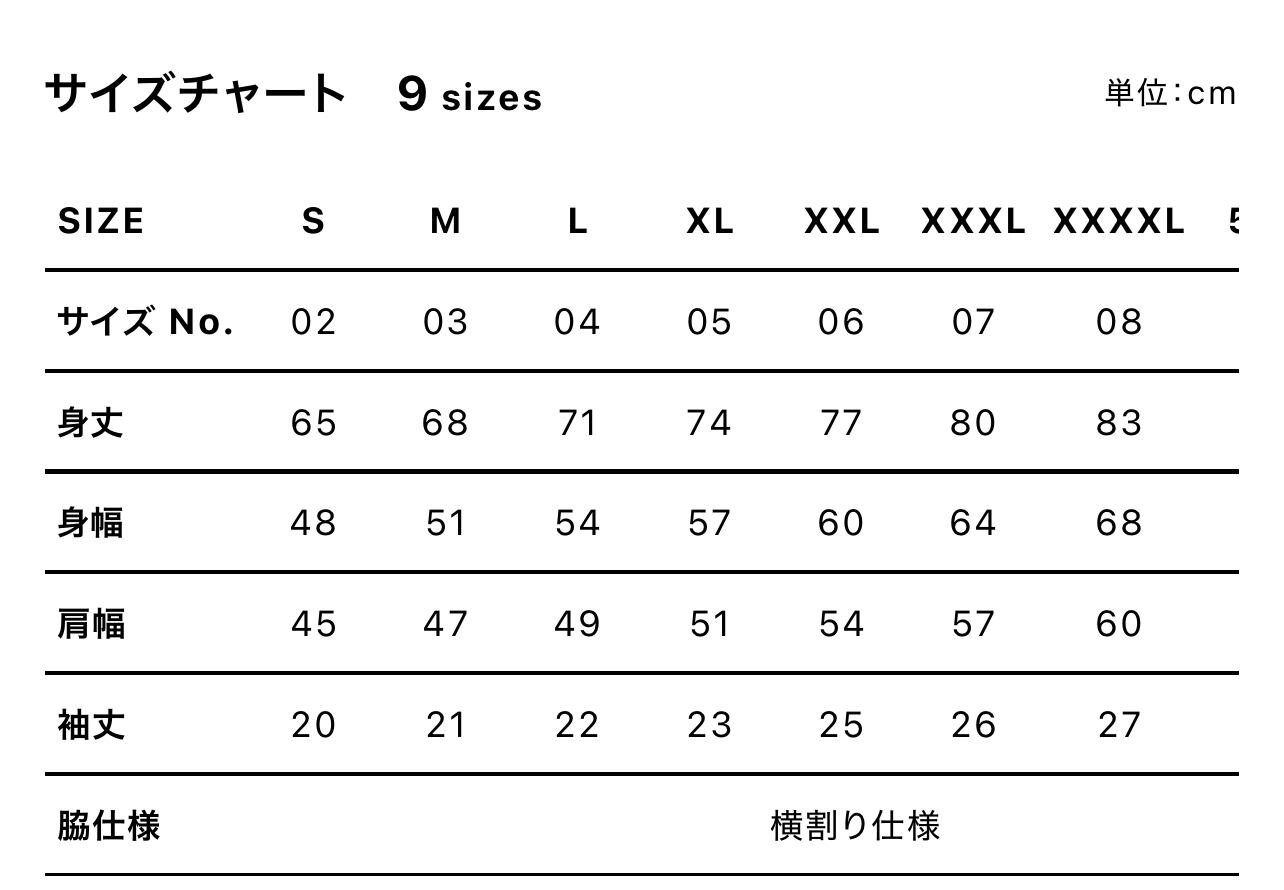 XXXXL以上のサイズに関しましては要お問い合わせくださいませ。